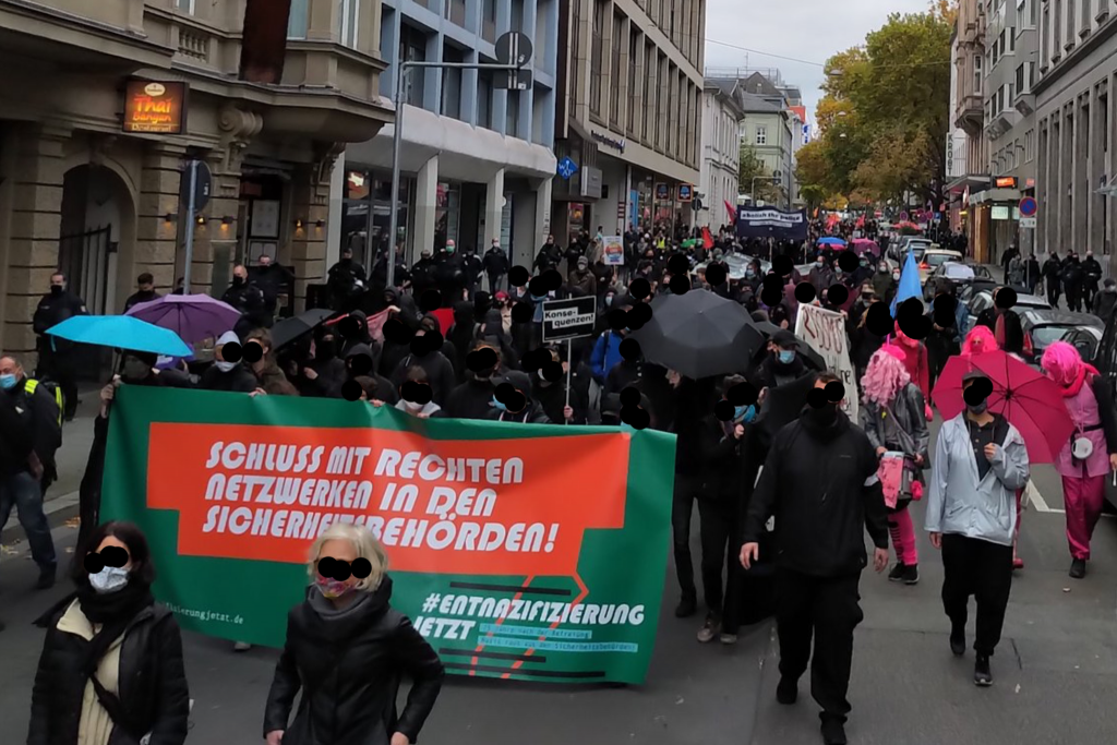 Das Aktionsbündnis #wi2410 hatte zu einer Demonstration gegen Rassismus und rechte Strukturen bei Polizei und Sicherheitsbehörden zum 24.10.2020 in Wiesbaden aufgerufen. Diesem Aufruf folgten über 800 Menschen aus diversen Städten des Rhein-Main-Gebiets. Auf dem vierstündigen Demozug durch die Innenstadt Wiesbadens wurden Coronaauflagen strikt eingehalten. Auf den Kundgebungen und Zwischenstopps wurden rund ein Dutzend Reden von beteiligten Organisationen und Grußworte verlesen. Weitere Details zum Ablauf und den Inhalten finden sich auf Twitter unter dem Bündnisaccount @wi_2410.