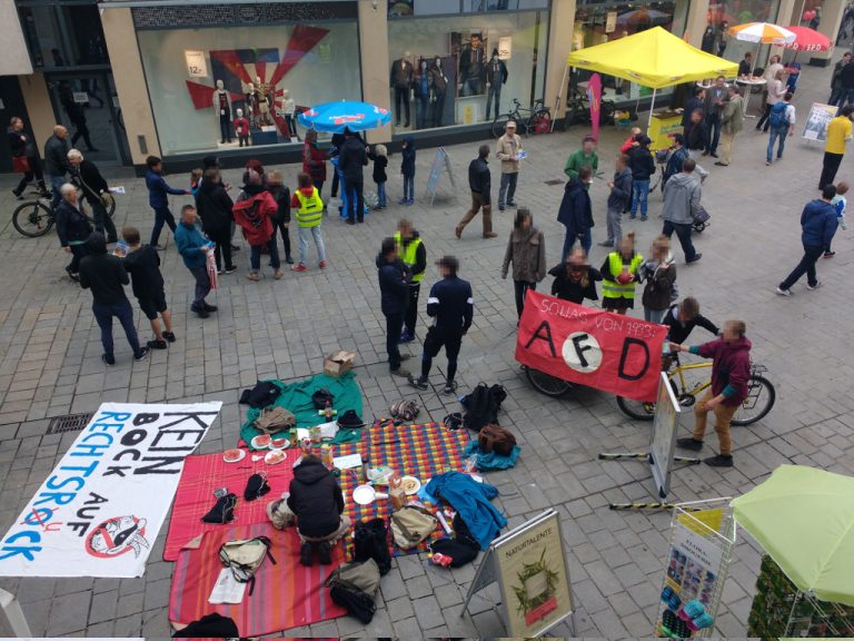 AfD-Stand ein solidarisches Frühstück organisiert und nebenbei mit