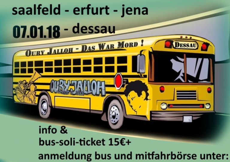 Die Gedenkinitiative Oury Jalloh mobilisiert für zwei Anreiseoptionen zur Demonstration am 7. Januar: