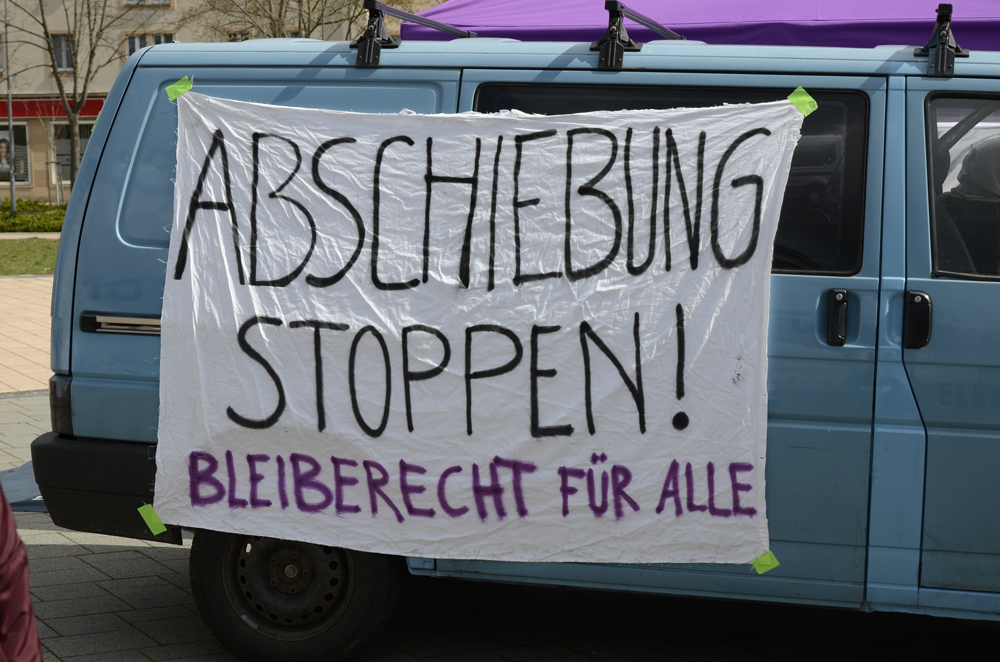 [Merseburg] Auch im Saalekreis fand im Rahmen der bundesweiten Protestaktionen am 7.4 eine Kundgebung statt. Unter dem Motto “Gegen jede Abschiebung – keine Abschiebungen nach Afghanistan” Sind Menschen gemeinsam auf die Strasze gegangen um zu sagen: „Es reicht! Habt ihrs bald mal?! Hört auf, Menschen Gewalt anzutun!“ oder wie es ein betroffener Freund sagen würde: “Deine Heimat hat mich gefickt”.